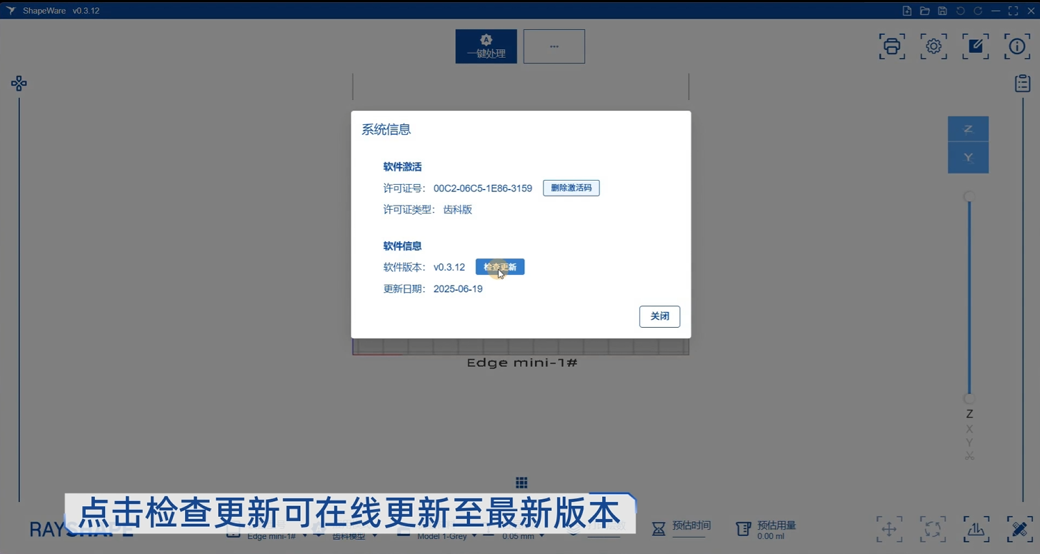 1.至前处理软件下载界面,下载最新版本软件安装程序,拷贝至指定电脑。 2.选择前处理软件安装程序,双击打开。 3.按需求执行安装选项。 4.选择安装位置。 5.等待安装进程。 6.安装结束,双击前处理软件图标打开软件,(也可双击桌面上自动生成的快捷方式)。 7.前处理软件可以正常打开,安装完成。 8.输入激活码可永久激活(激活码在U盘包装外)。 9.点击右上角系统信息图标可检查激活信息与版本号。 10.点击右上角系统信息图标可检查激活信息与版本号。 11.点击检查更新可在线更新至最新版本。